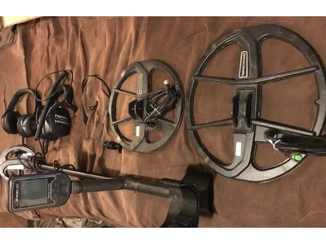 Up for sale is a nice Nokta/Makro Legend with wireless headphones & wireless earbuds, the LG15(6"), stock LG28"11", and the LG35" 12"x13" coils. All works as should and in great shape. And all cables.